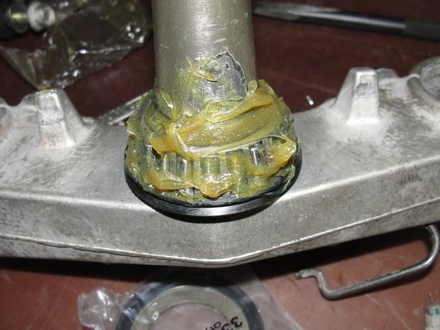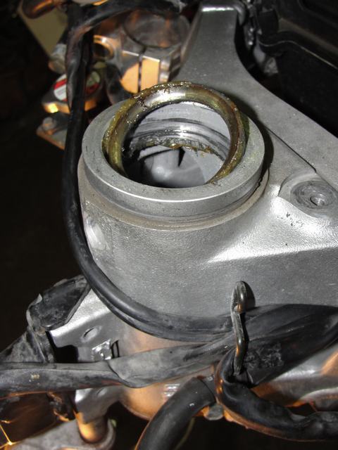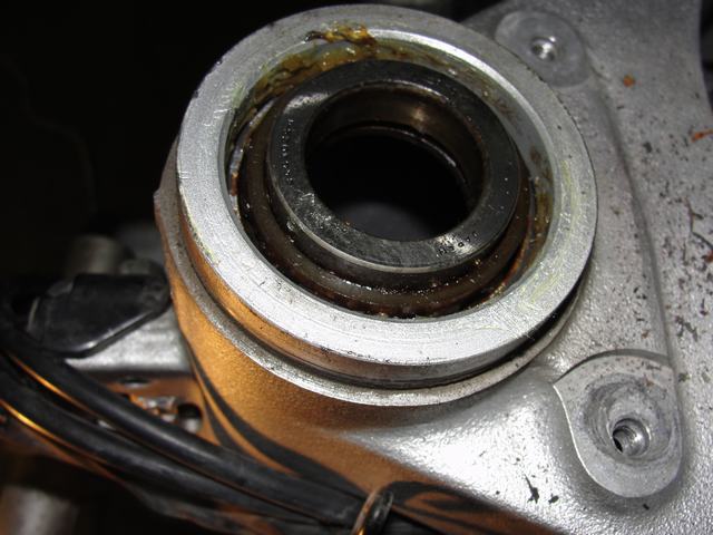 Начнем с замены рулевого подшипника. Он был жутко разболтан, и как оказалось пожже, изрядно разбит.