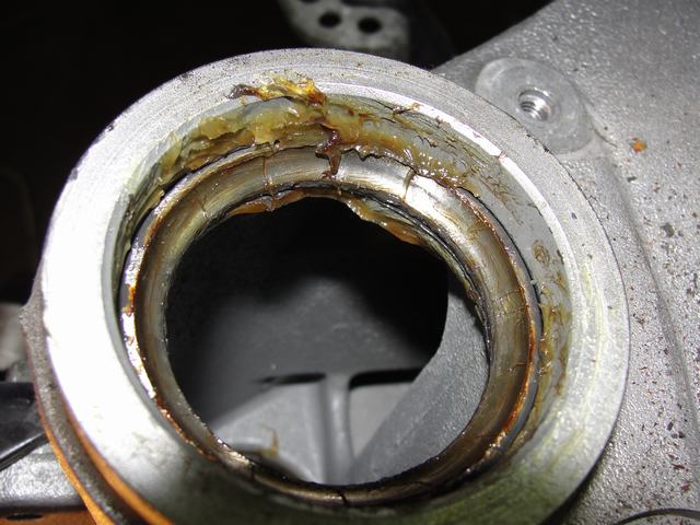 Выпрессовываем нижнюю обойму верхнего подшипника.