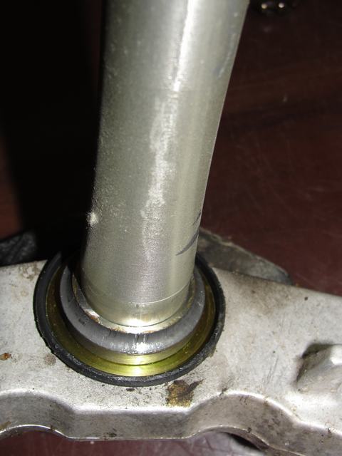 После, необходим было заменить масло в перьях вилки, к слову, они были повреждены ударом, на фото плохо видно, но в реальной жизни, картина немного печальнее.